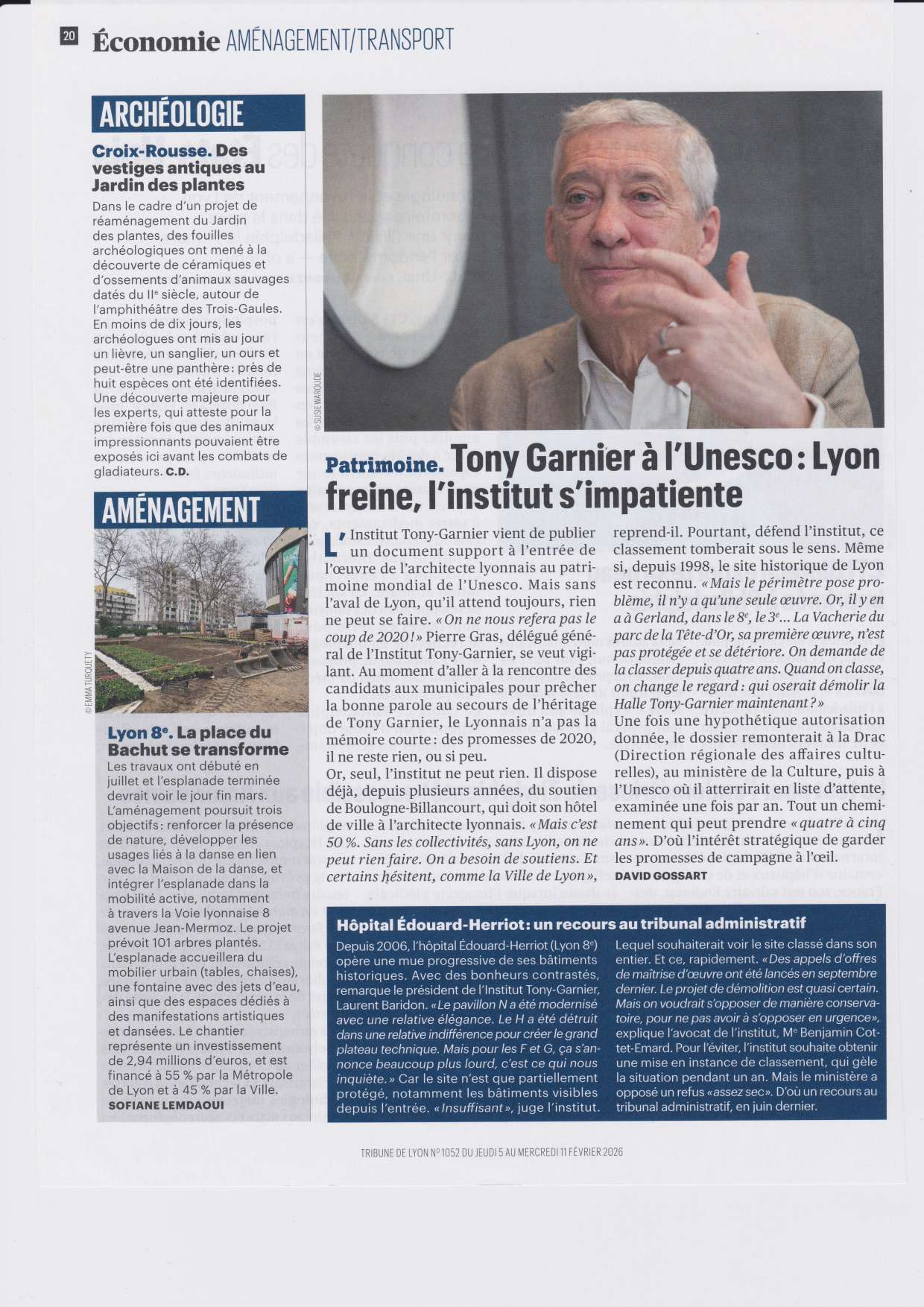 La Tribune de Lyon parle de nos actions pour faire figurer le patrimoine Tony Garnier sur la liste du patrimoine mondial de l'Unesco.